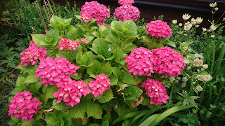 The hydrangeas are flowering well.