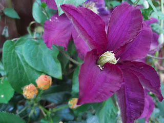 As you can see, we have planted this vibrant beauty in one of the Patio Borders, because our neighbours decided to rip out the evergreen conifer hedge that hid the view of the people below us. It's not much just now, in fact as I write this entry only a solitary leaf remains on it but this certainly has a wow factor for autumn that we want. The buttery yellow of the leaves of the three birches behind, in Mugwart's Retreat, really lend to the depth of autumn colour we're after....or at least it will do in a year or two when this has filled out.